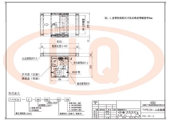 使用34mm铝合金型材支架,皮带传送、驱动,使用于各工序间短距离直线输送。最短机长300mm。