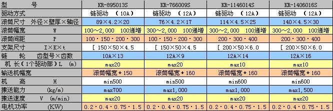 KR-S系列驱动输送机使用单排链条驱动每一根滚筒,传动平稳、匀速,适用于定速搬运物品的场合。