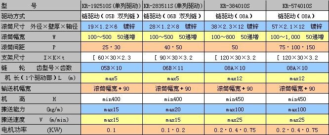KR-S系列驱动输送机使用单排链条驱动每一根滚筒,传动平稳、匀速,适用于定速搬运物品的场合。