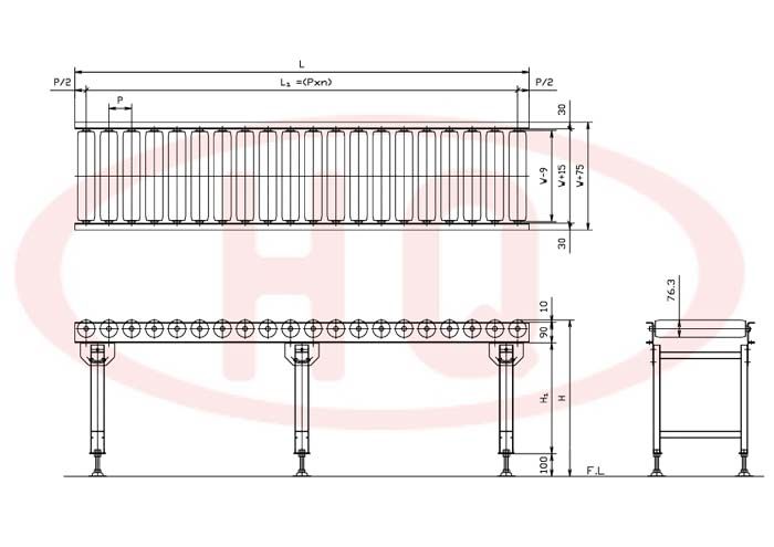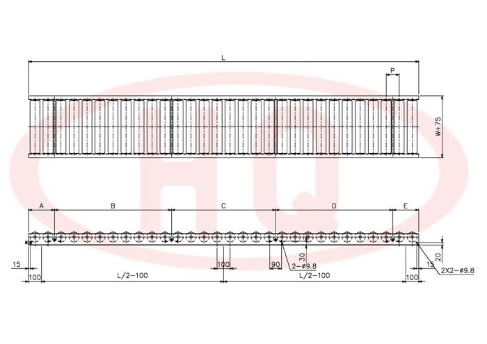 | 输送机幅宽 W+75 (mm) | 175 | 275 | 375 | 475 | 575 | 675 | 775 | 875 | 975 | 1,075 | ||