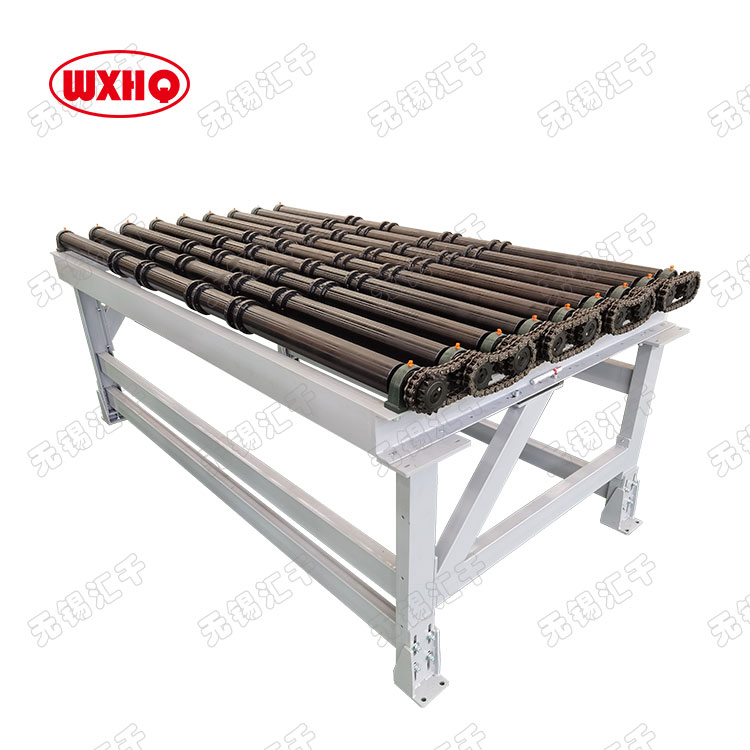 该滚筒输送机为定制输送机,实心浇铸,承重大且耐磨,适合用于坦克履带等物品运输。