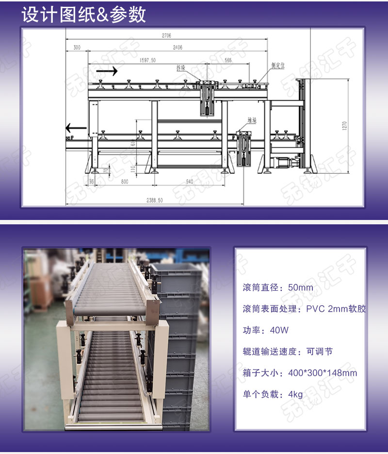 双层辊道线(PVC包胶滚筒 提升机完成上下输送 辊道线配有拆垛、码垛装置)