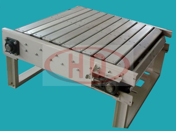 板链输送机以标准板链为承载面,由马达减速机为动力传动,运行在专用导轨中,根据工艺流程及材质不同,板链输送机分为平板链输送机,爬坡板链输送机,顶板链输送机和塑钢链输送机,广泛应用于食品、罐头饮料、化妆品洗涤产品等行业,它可满足贵公司所需的自动输送、分级包装、耐磨、防腐、结构精密、运行平稳。