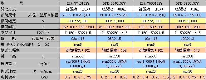 KPR-SW系列驱动输送机使用双排链条驱动,使用大强度的滚筒,适用于搬运大重量物品场合。