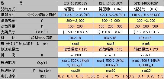 KPR-SW系列驱动输送机使用双排链条驱动,使用大强度的滚筒,适用于搬运大重量物品场合。