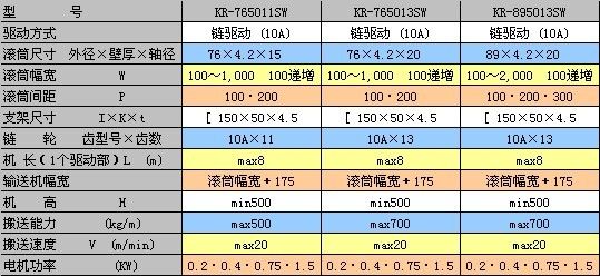 KR-SW系列驱动输送机使用双排链条驱动,相邻滚筒之间独立链条连动,传动平稳、匀速,适用于中重量搬运场合。