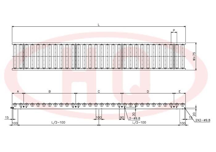 | 型 号 | 滚筒外径(φ)×壁厚(t) 轴承 | 轴外径(φ)×壁厚(t) 加工 | 支架形状I×K×t 输送机高(H) | 机 长 L | 滚筒幅 宽 W | 滚筒间隔 P | 转弯半径 R | ||||||