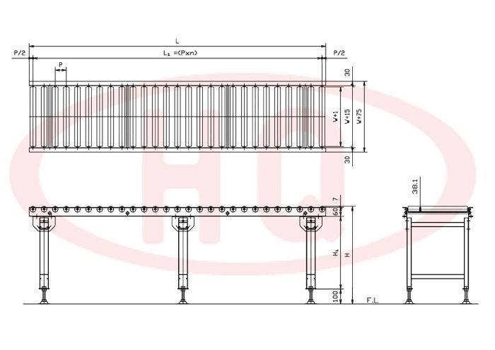 | 输送机幅宽 W+75 (mm) | 175 | 275 | 375 | 475 | 575 | 675 | 775 | 875 | 975 | 1,075 | |||