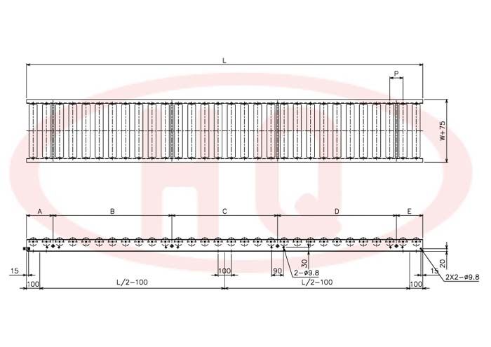 | 输送机幅宽 W+75 (mm) | 175 | 275 | 375 | 475 | 575 | 675 | 775 | 875 | 975 | 1,075 | ||