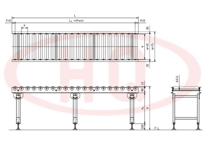 | 输送机幅宽 W+75 (mm) | 175 | 275 | 375 | 475 | 575 | 675 | 775 | 875 | 975 | 1,075 | ||