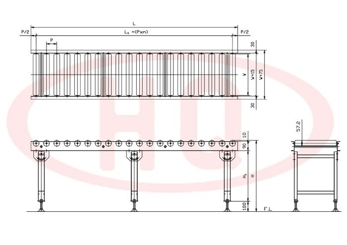 | 输送机幅宽W+75(mm) | 175 | 275 | 375 | 475 | 575 | 675 | 775 | 875 | 975 | 1,075 | |||