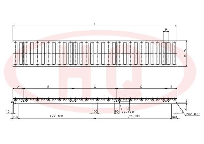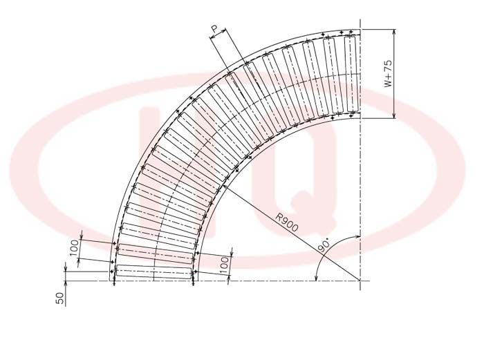 | 型 号 | 滚筒外径(φ)×壁厚(t) 轴承 | 轴外径(φ)×壁厚(t) 加工 | 支架形状I×K×t | 机 长 L | 滚筒幅宽 W | 滚筒间距 P | 转弯半径 R | ||||||