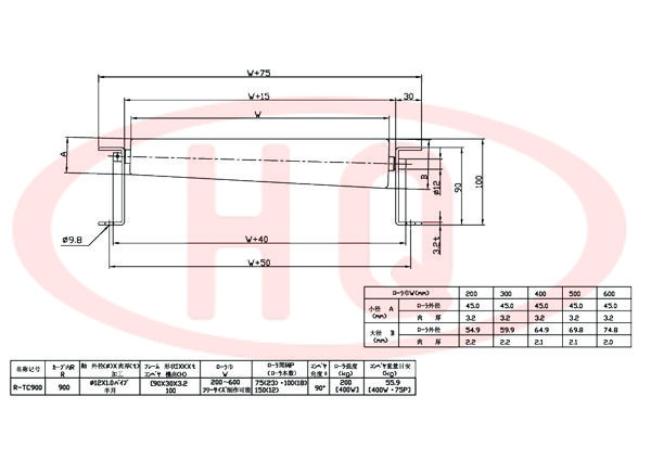 | R-TC900 | 小径 A (mm) | 滚 筒 外 径 | 45.0 | 45.0 | 45.0 | 45.0 | 45.0 | |