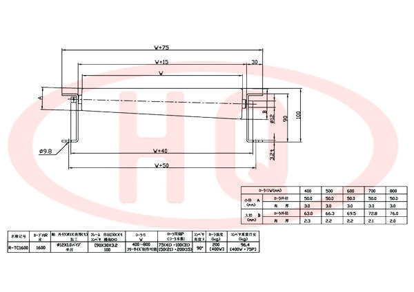 | R-TC1,600 | 小径 A (mm) | 滚 筒 外 径 | 50.0 | 50.0 | 50.0 | 50.0 | 50.0 | |
