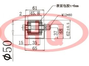 2.滚轮直径:φ50mm,福来轮净宽:45.8mm(胶面宽),使用轴:M12