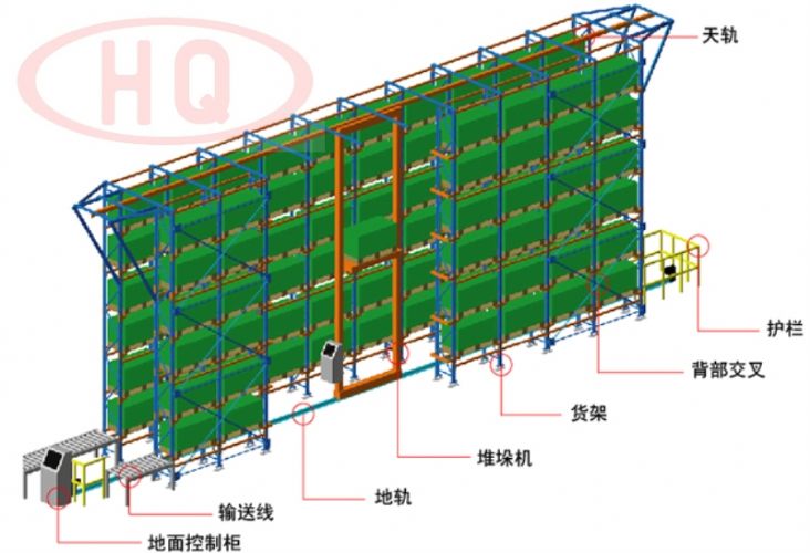 自动化立体仓储系统(AS/RS)由货架系统、堆垛机、输送系统、电气控制系统、网络及管理系统组成。操作系统软件的设定需要客户提供各种不同数据,再加以分析然后制定。